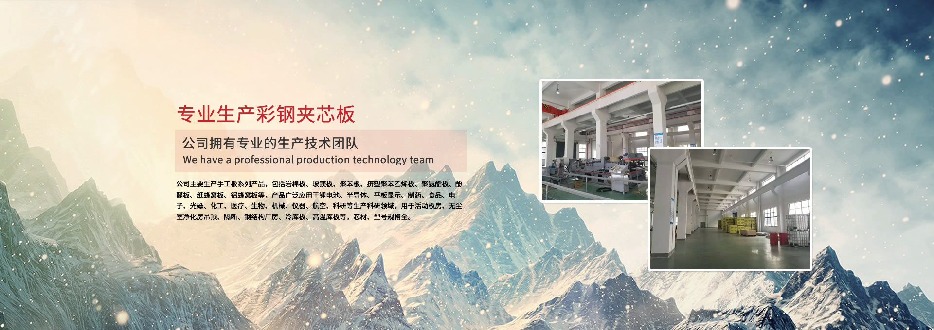 公司主要生產(chǎn)手工板系列產(chǎn)品,包括巖棉板、玻鎂板、聚苯板、擠塑聚苯乙烯板、聚氨酯板、酚醛板、紙蜂窩板、鋁蜂窩板等,產(chǎn)品廣泛應(yīng)用于鋰電池、半導(dǎo)體、平板顯示、制藥、食品、電子、光磁、化工、醫(yī)療、生物、機(jī)械、儀器、航空、科研等生產(chǎn)科研領(lǐng)域,用于活動板房、無塵室凈化房吊頂、隔斷、鋼結(jié)構(gòu)廠房、冷庫板、高溫庫板等,芯材、型號規(guī)格全。 公司擁有專業(yè)的生產(chǎn)技術(shù)團(tuán)隊,周到的服務(wù)保證,以“質(zhì)量至上、信譽(yù)至上、服務(wù)至上”為宗旨,為用戶提供合格的產(chǎn)品和滿意的服務(wù),歡迎各界朋友參觀、指導(dǎo)!公司竭誠希望與各界朋友建立廣泛聯(lián)系,加強(qiáng)相互合作、共同發(fā)展!